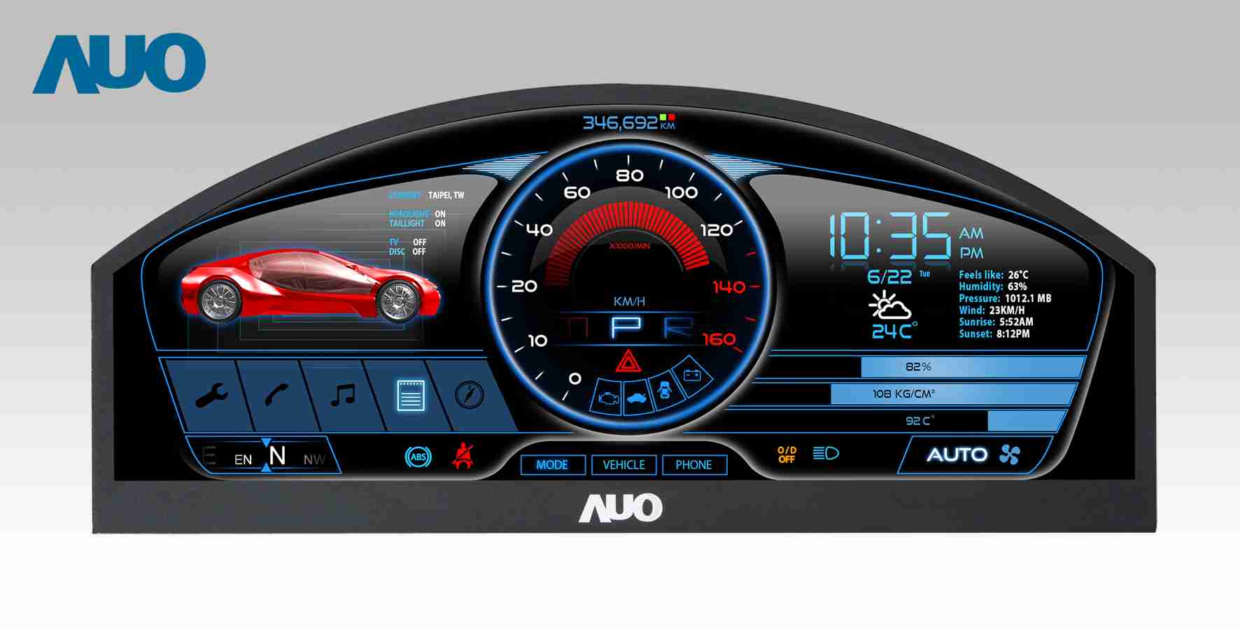 杏悦2 12.3吋超高解析异型切割车用面板,,,,拥有流线外观及精细画质