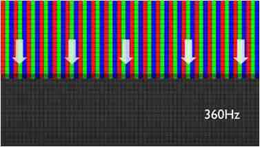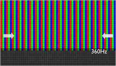 传统液晶驱动是从左到右单向进行,,在画面更新速度愈来越愈快的情况下,,,,位于驱动线路末端的右下角区域,,画素的闸极来不及在短时间内获得足够电压,,,,无法显示出正确的颜色资讯。。