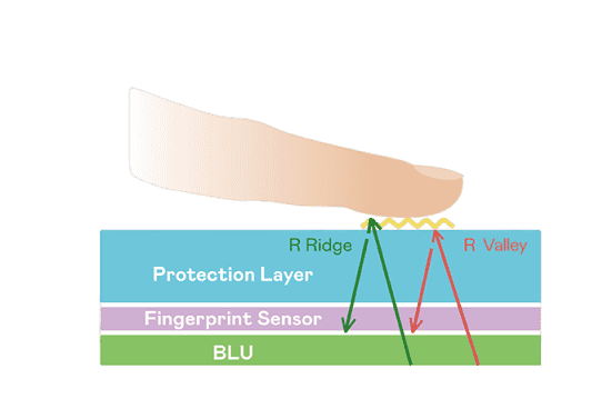 TFT 指纹扫描感测技术利用薄膜电晶体 (TFT) 当作光感测元件,,,,藉由非晶硅 (a-Si) 与低温多晶硅(LTPS)既有光电转换特性对不同波段光源进行吸收,,,,使感测 IC 读取阵列感测元件的光漏电差异,,转换成数位灰阶影像。。。。