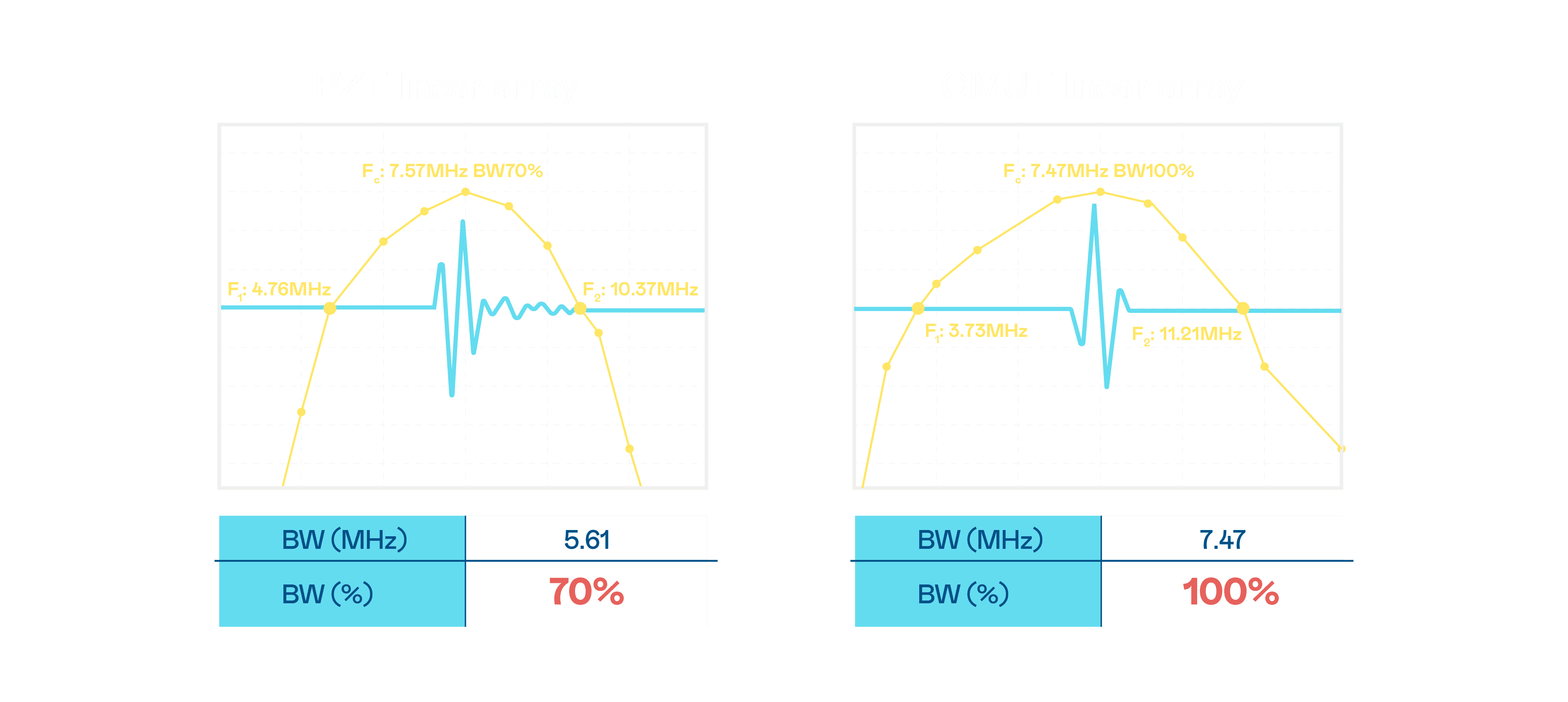 超音波影像的解析度高低,,,首先取决于探头能发出的讯号频宽。。。。杏悦2 CMUT 可提供高清晰的超音波讯号,,,提供高频宽、、高灵敏度、、影像纹理细节更高的超音波影像,,,,协助医护人员缩短影像判读时间及利用精准的医疗影像进行诊断。。。